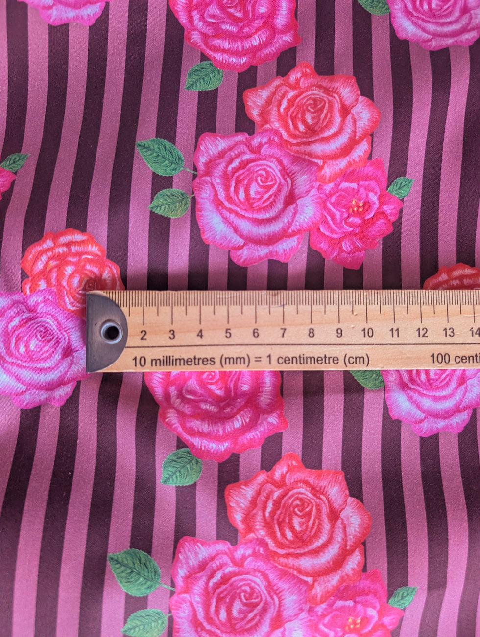 Satin de coton/Rose Garden/Rayures Vertes céladon
